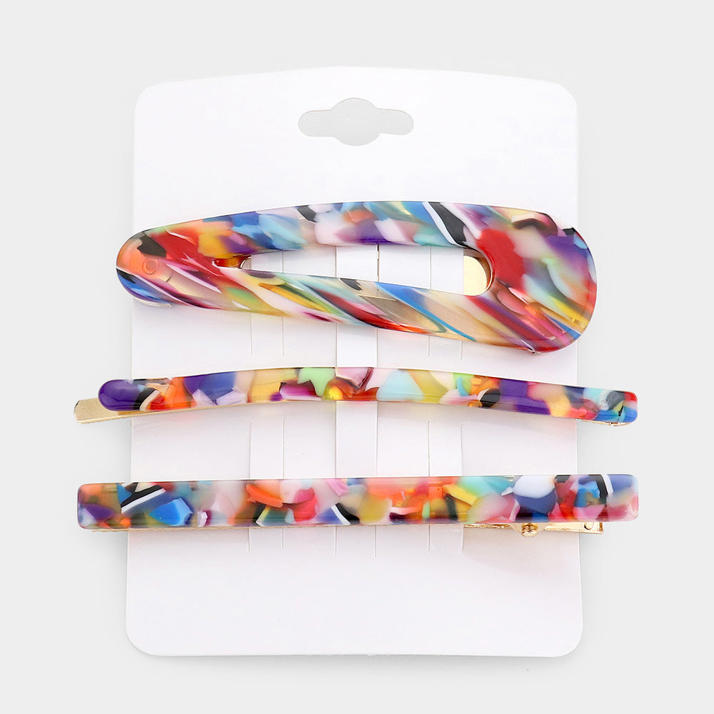 iLLASPARKZ 3PCS - Celluloid Acetate Snap Clip /Bobby Pin / Snap Alligator Hair Clip
