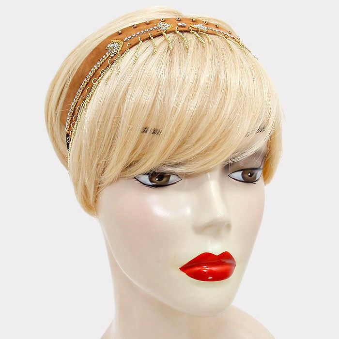 iLLASPARKZ Arrow Pattern Suede Metal Chain Fringe Drop Headband