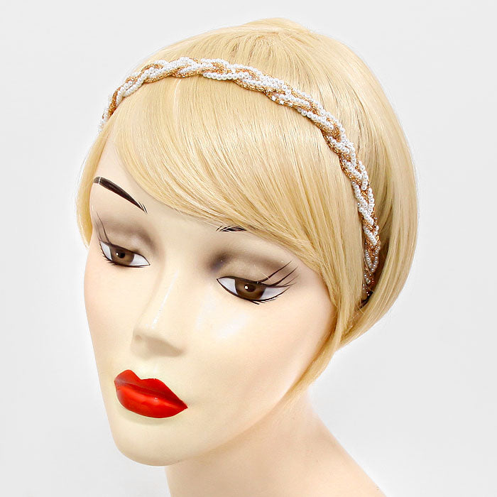 iLLASPARKZ Braided Pearl & Metal Chain Stretch Headband