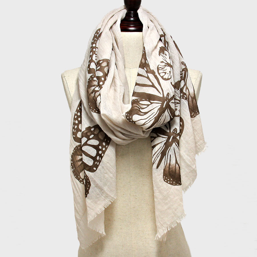 iLLASPARKZ Butterfly Pattern Printed Frayed Trim Scarf