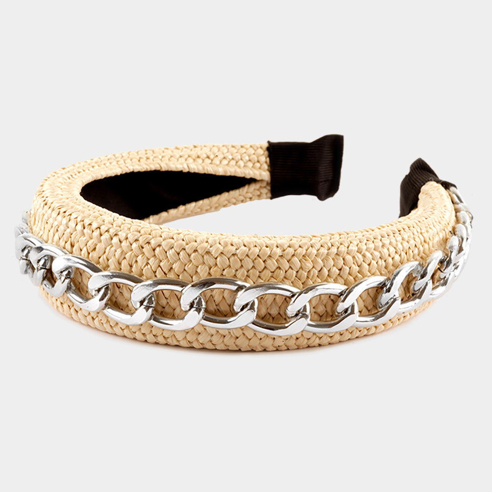 iLLASPARKZ Chain Trim Raffia Woven Headband