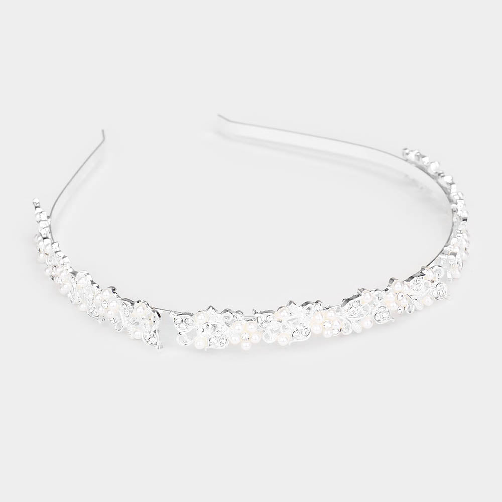 iLLASPARKZ Crystal Pave Pearl Floral Vine Headband