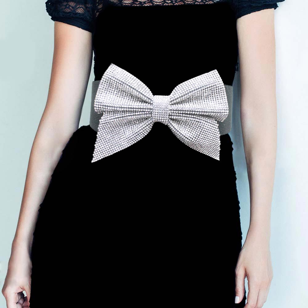iLLASPARKZ Crystal Rhinestone Pave Bow Elastic Stretch Belt