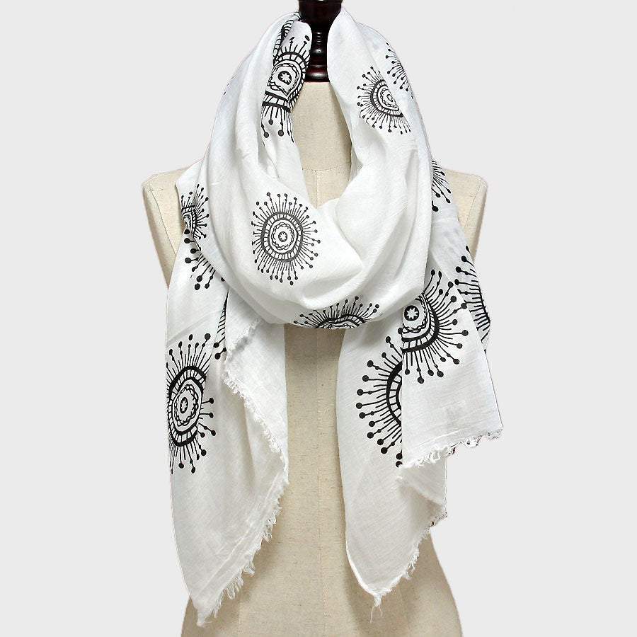 iLLASPARKZ Dandelion Pattern Printed Frayed Trim Scarf