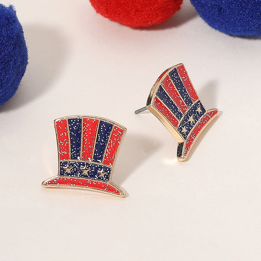 iLLASPARKZ Enamel Sparkly American USA Flag Patriotic Top Hat Stud Earrings