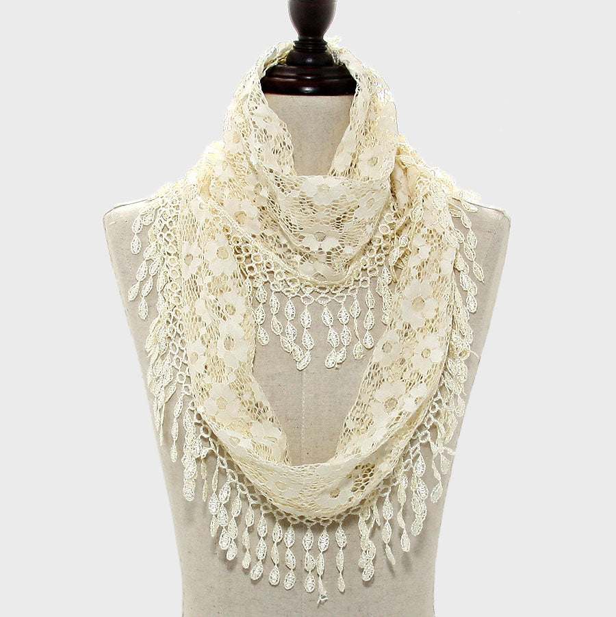 iLLASPARKZ Flower Lace Leaf Fringe Infinity Scarf
