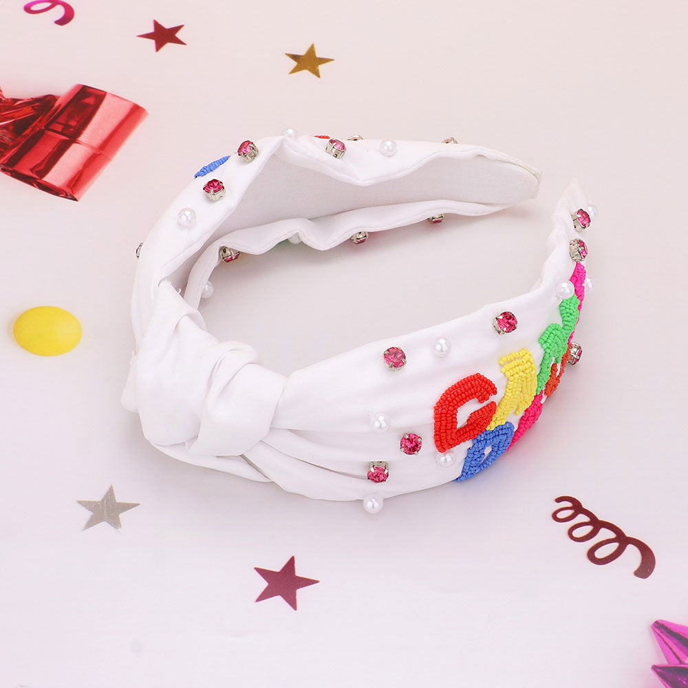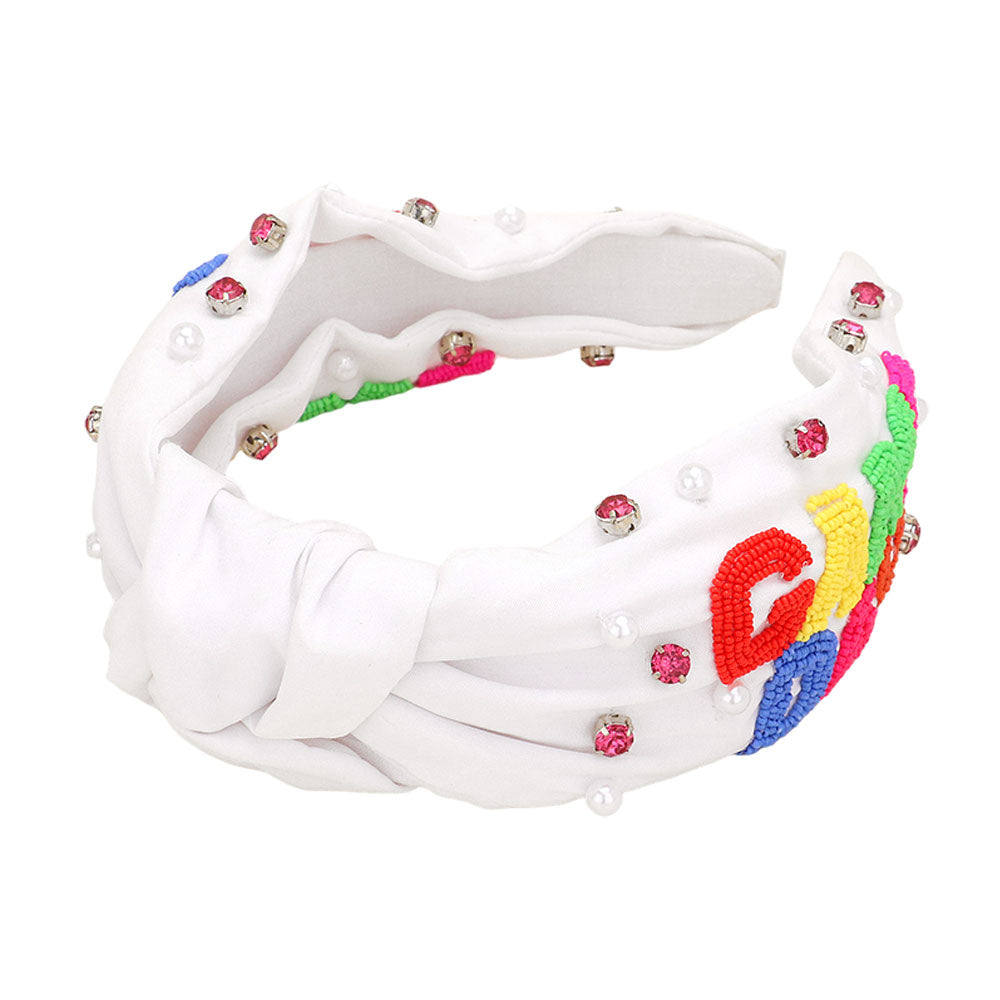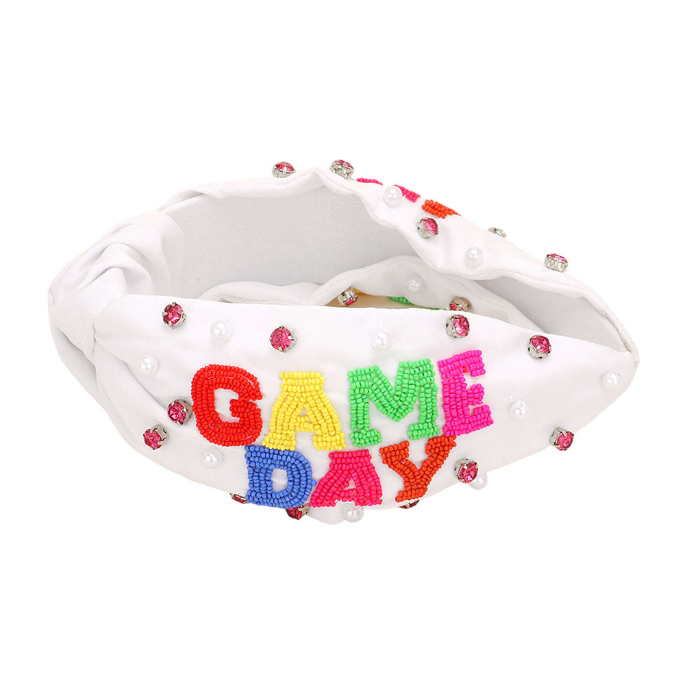 iLLASPARKZ Gameday Seed Beaded Pearl Stone Cluster Embellished Knot Headband