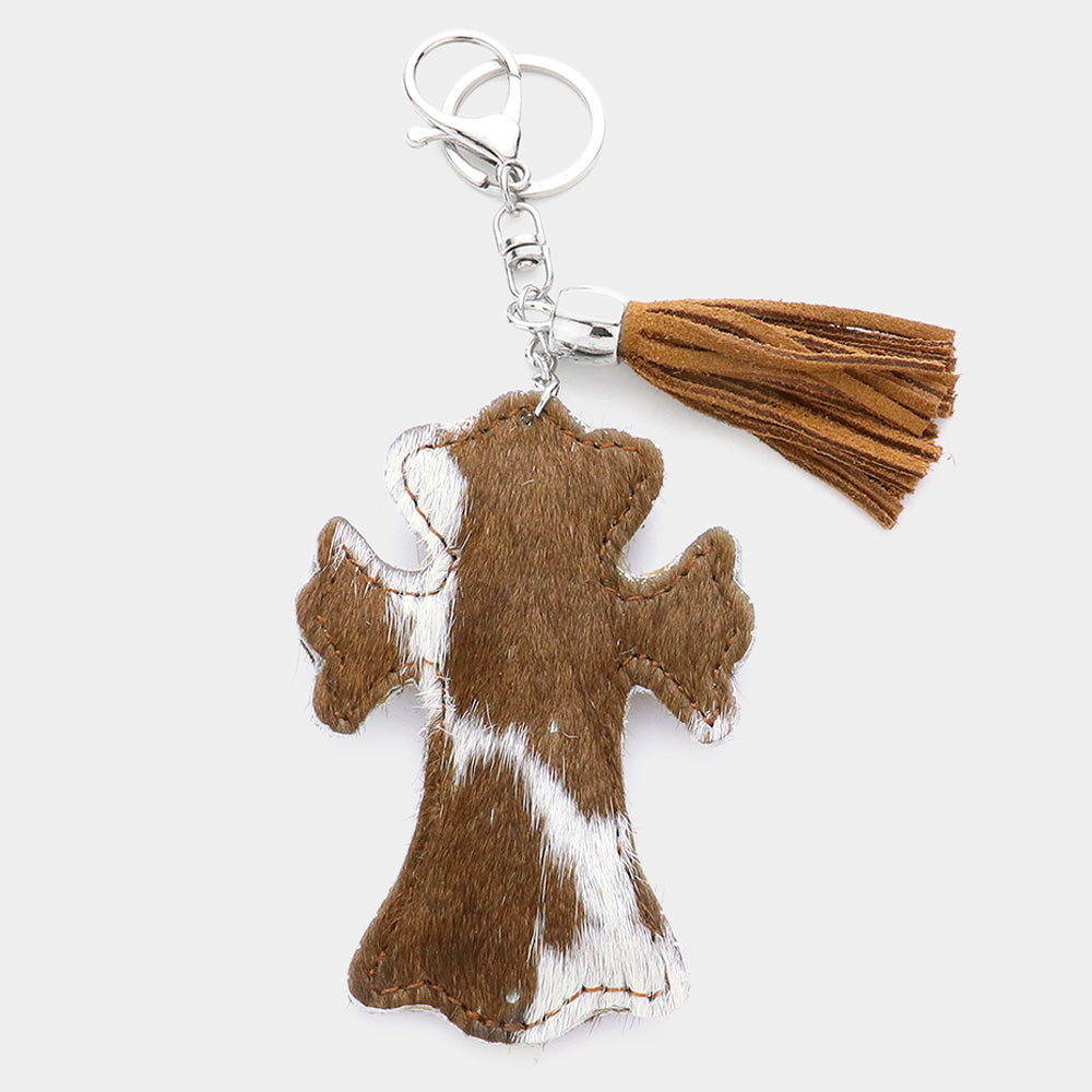 iLLASPARKZ Genuine Fur Calf Cross Tassel Keychain