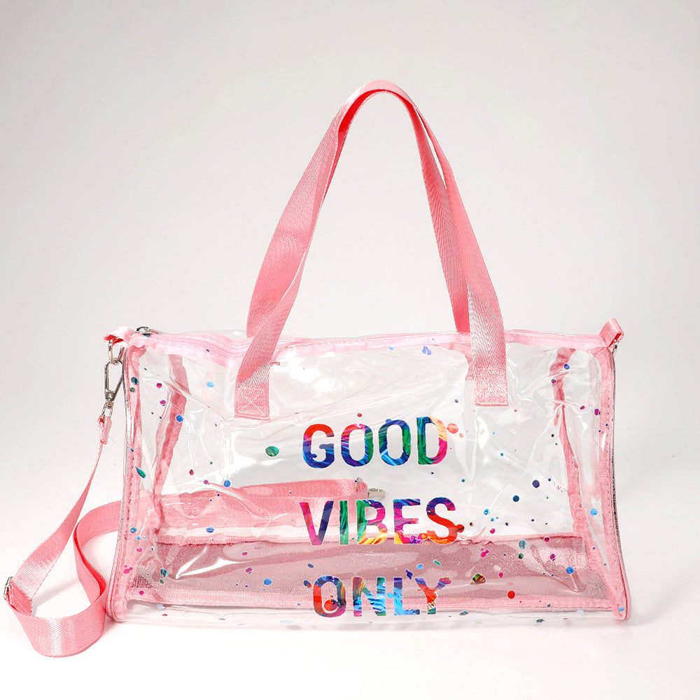 iLLASPARKZ GOOD VIBES ONLY Message Printed Transparent Boston Bag / Crossbody Bag