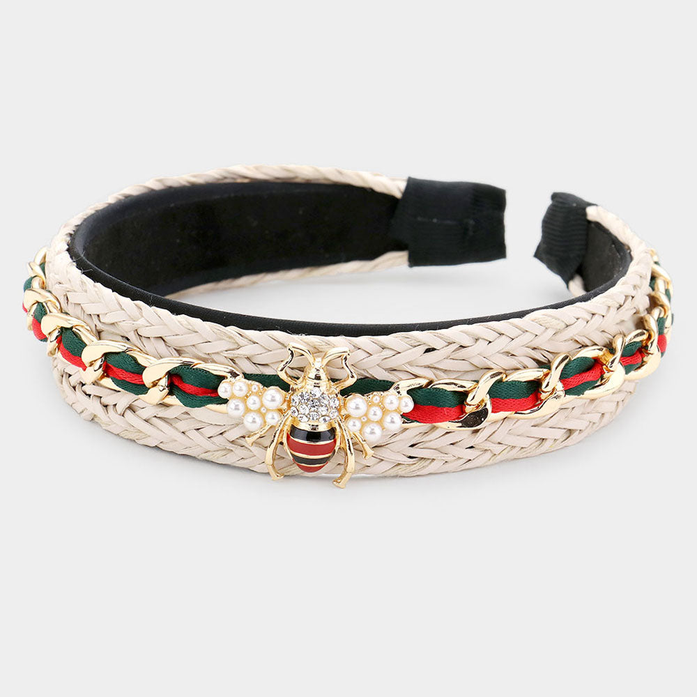 iLLASPARKZ Honey Bee Accented Metal Chain Color Block Detail Braided Faux Leather Headband
