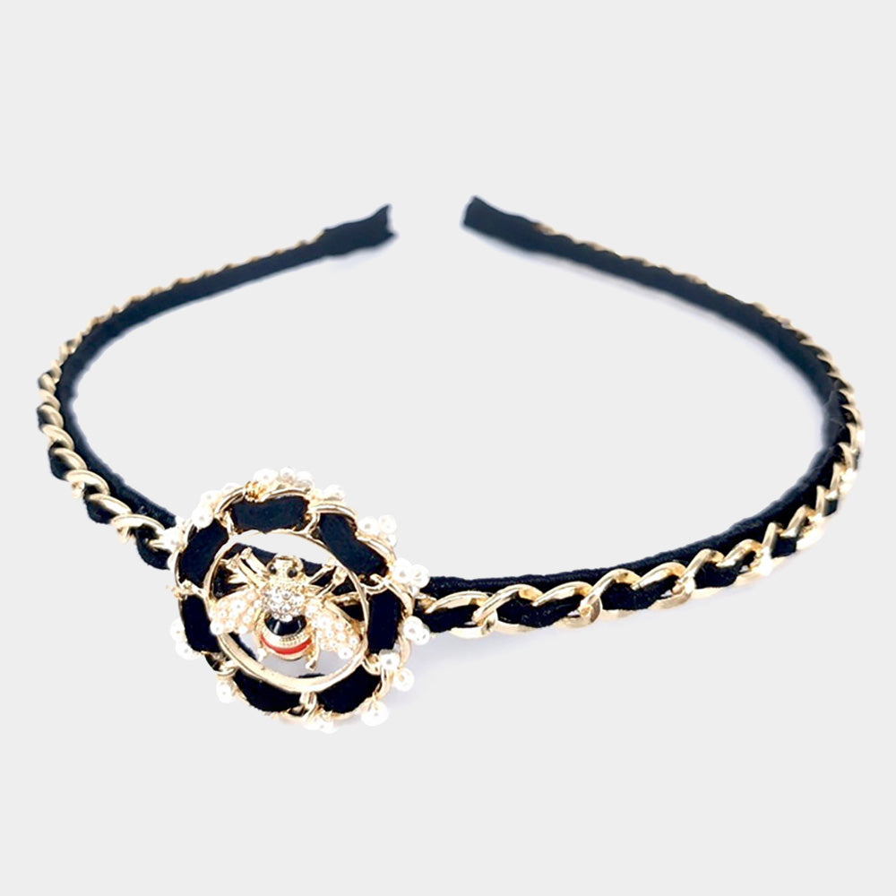 iLLASPARKZ Honey Bee Accented Suede Metal Chain Detail Headband