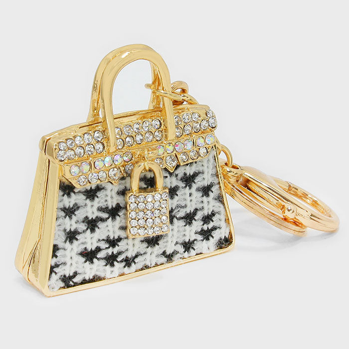 iLLASPARKZ LEOPARD KELLY HANDBAG RHINESTONE KEY RING KEY CHAIN