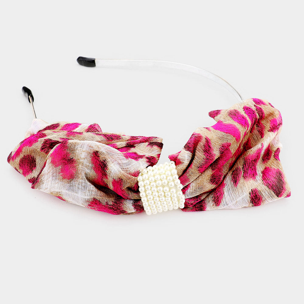 iLLASPARKZ Leopard Pattern Print Bow pearl Headband