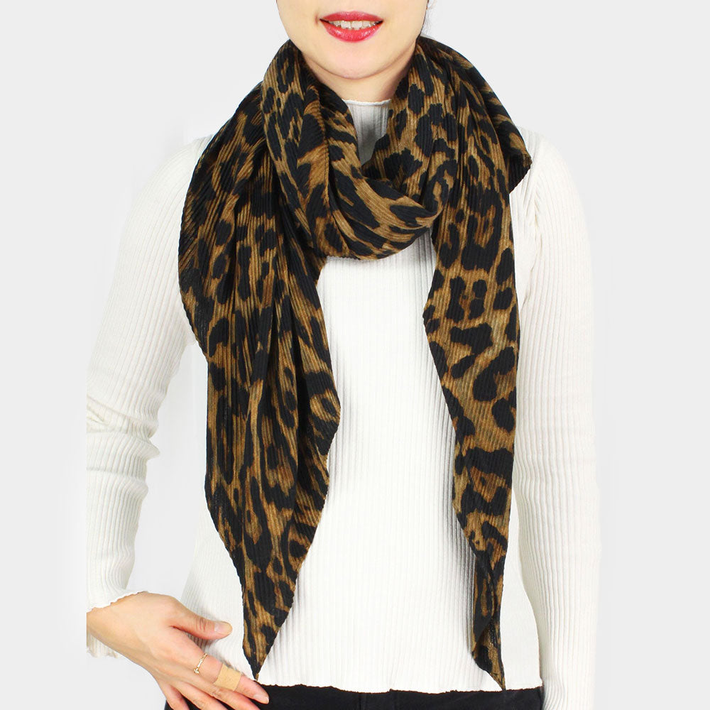 iLLASPARKZ Leopard Pattern Printed Pleated Oblong Scarf