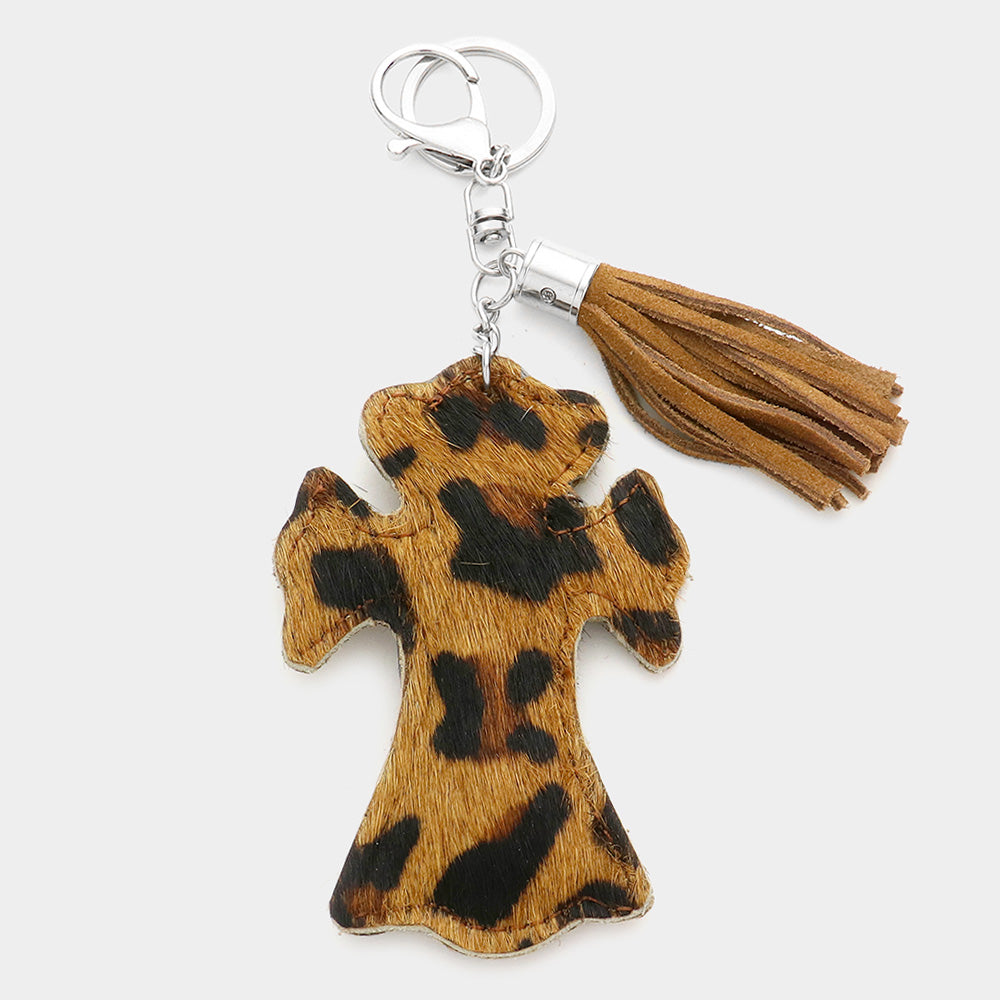iLLASPARKZ Leopard Patterned Genuine Fur Calf Cross Tassel Keychain