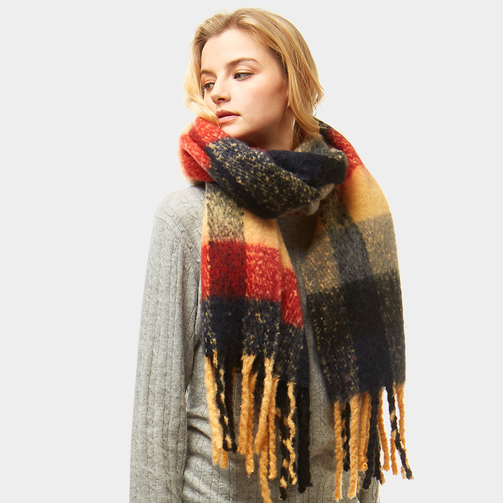 iLLASPARKZ Multi Color Plaid Oblong Fringe Scarf