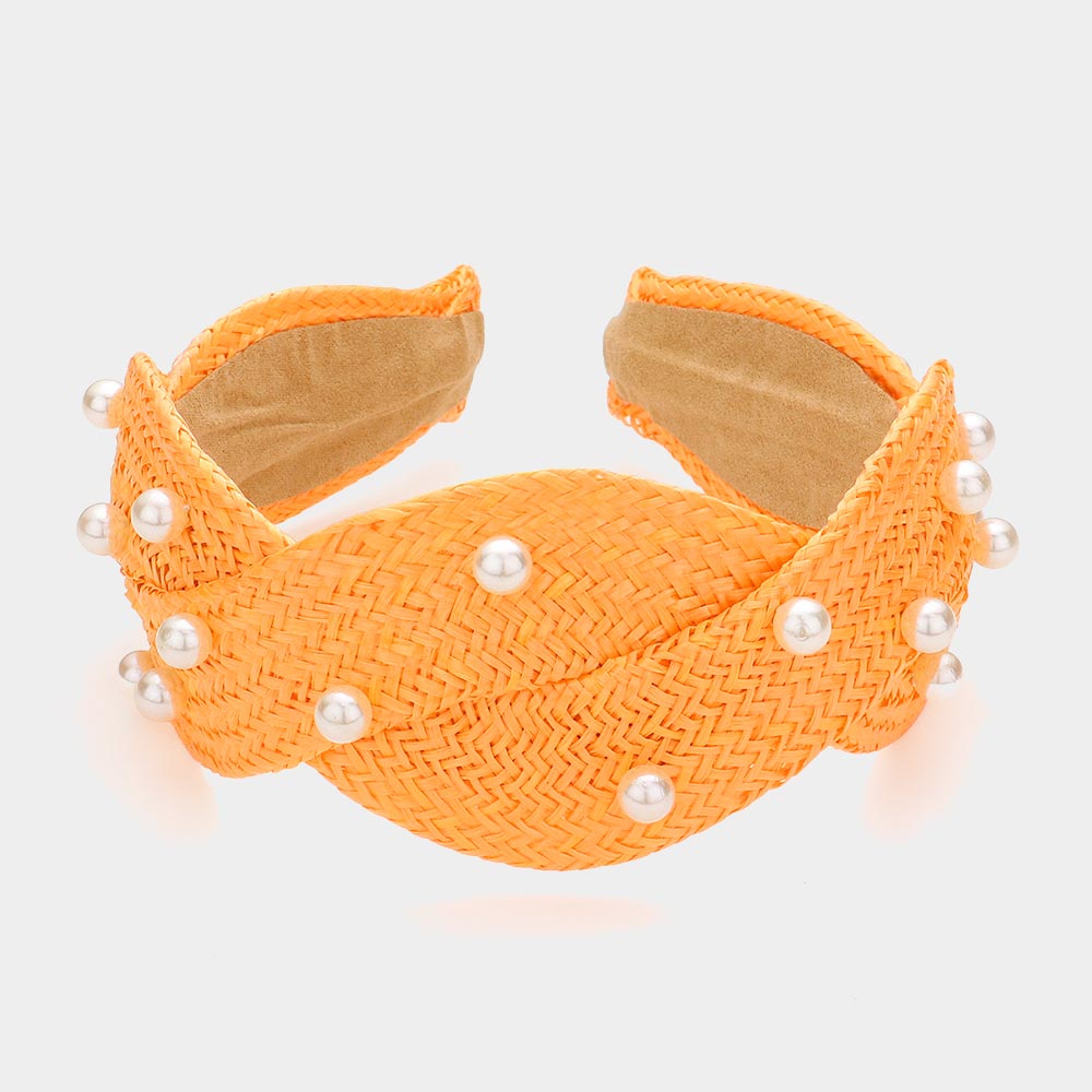 iLLASPARKZ Pearl Embellished Braided Straw Headband
