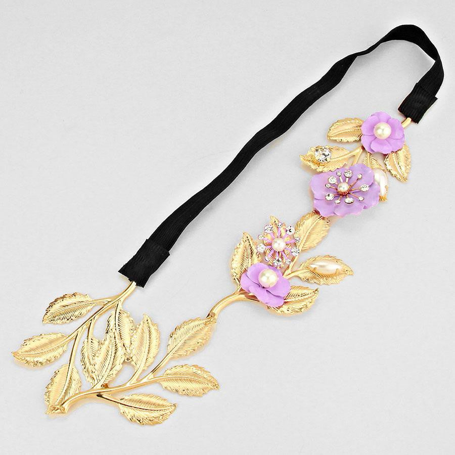 iLLASPARKZ Pearl Embellished Metal Leaf Vine Stretch Headband