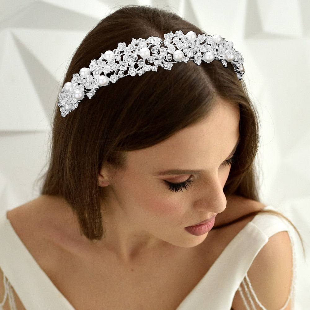 iLLASPARKZ Pearl Pointed Stone Paved Flower Cluster Wrap Headpiece