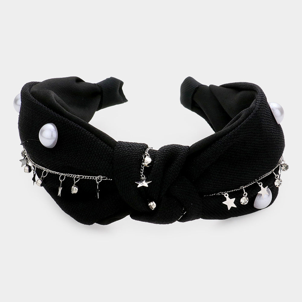 iLLASPARKZ Pearl Round Stone Metal Star Embellished Knot Burnout Headband