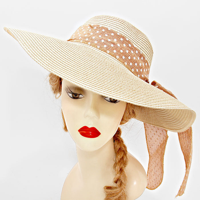 iLLASPARKZ Polka Dot Ribbon Bow Straw Floppy Hat