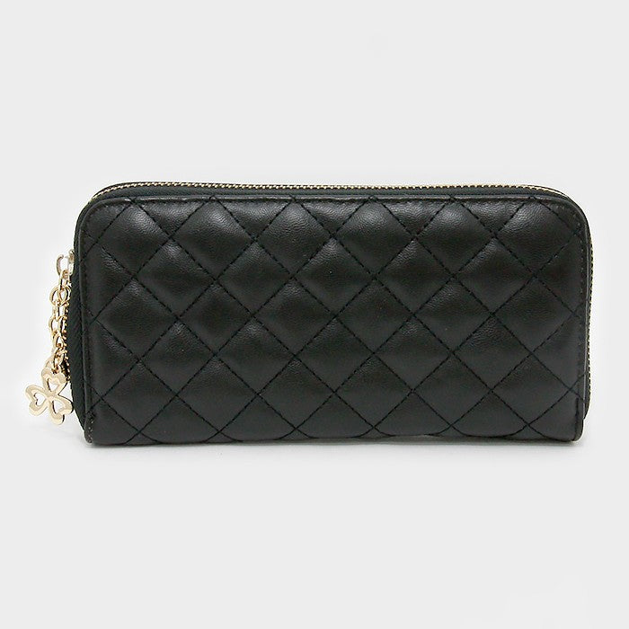 iLLASPARKZ Quilted faux leather shamrock charm zip around wallet