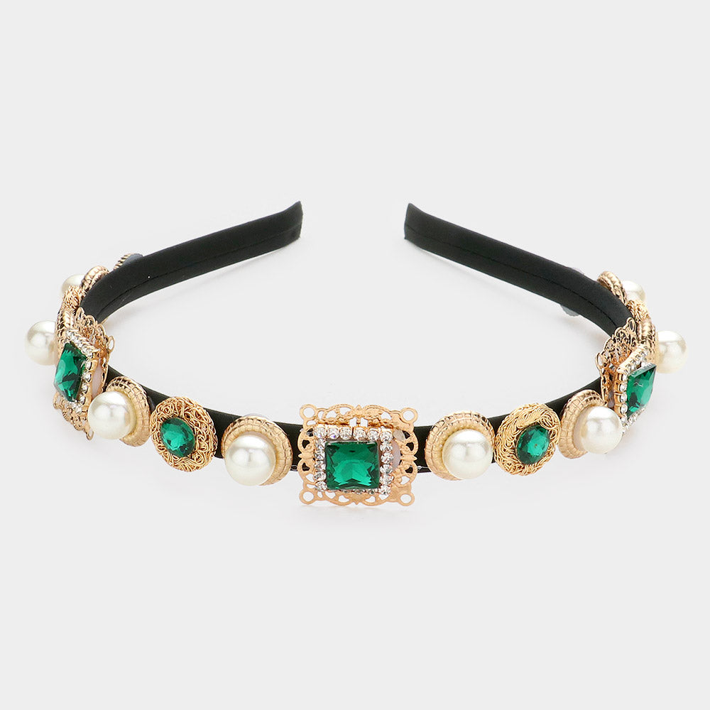 iLLASPARKZ Round Square Stone Pearl Embellished Headband