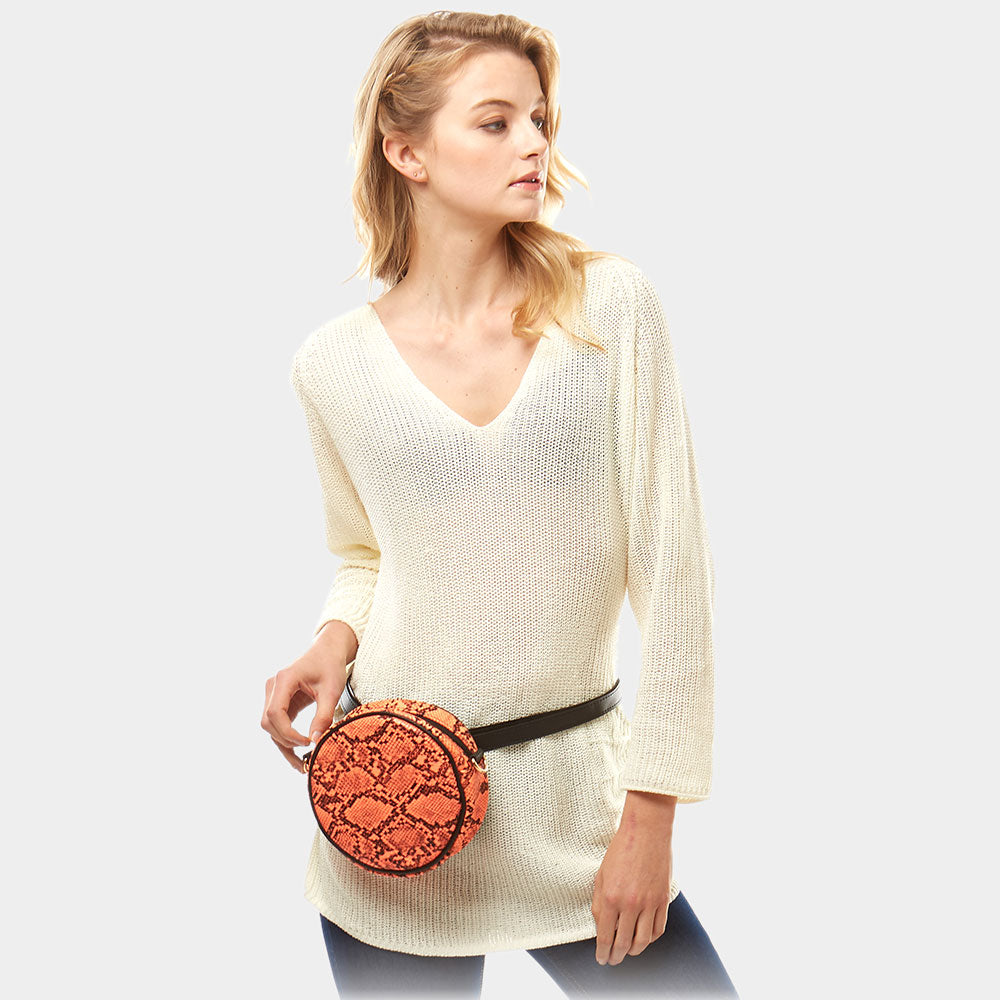 iLLASPARKZ Snake Skin Print Round Crossbody Bag / Belt Bag