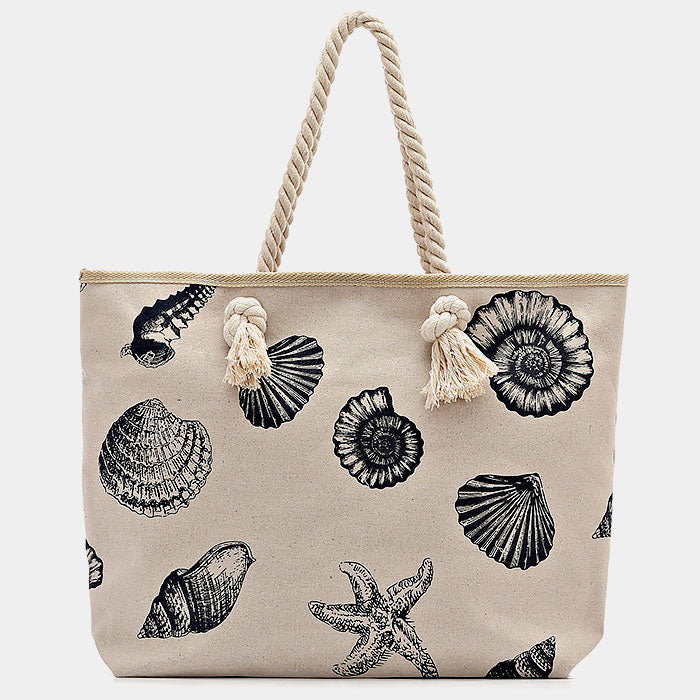 iLLASPARKZ Starfish & shell print linen tote shoulder beach bag