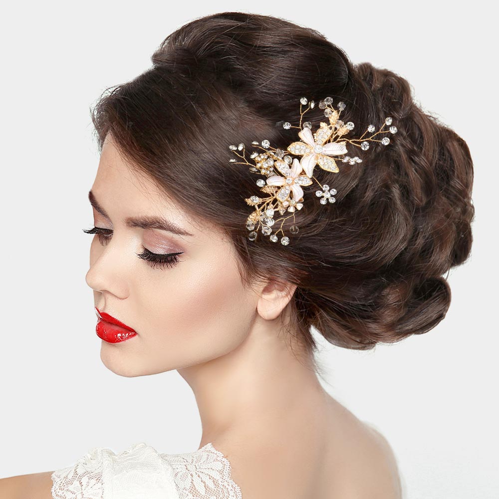 iLLASPARKZ Stone Embellished Flower Leaf Hair Comb