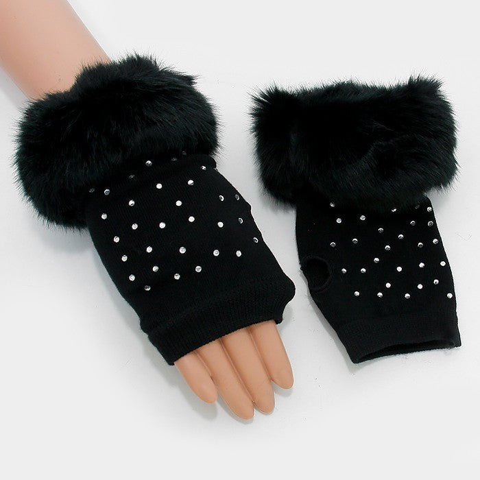 iLLASPARKZ Studded Knit Fur Fingerless Gloves