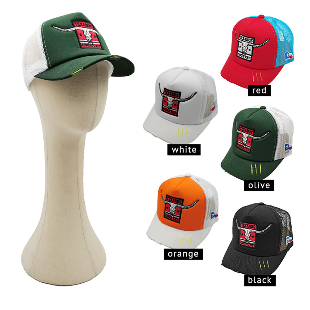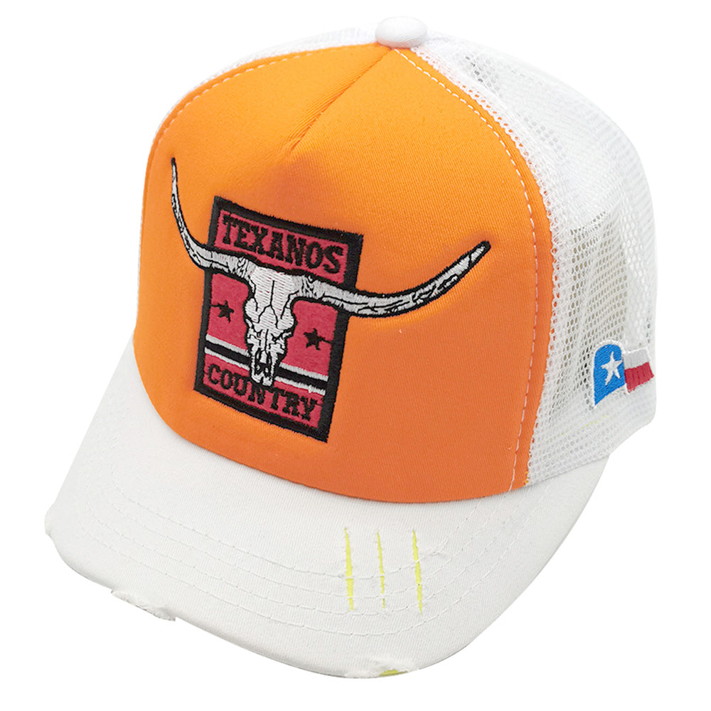 iLLASPARKZ TEXANOS COUNTRY Message Texas Steer Head Embroidered Mesh Back Trucker Hat