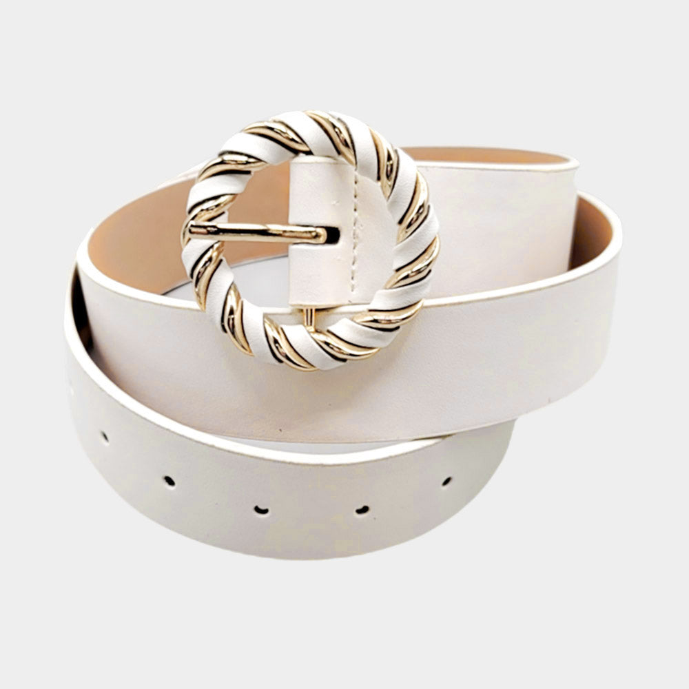 iLLASPARKZ Twisted Open Metal Circle Faux Leather Buckle Accented Belt