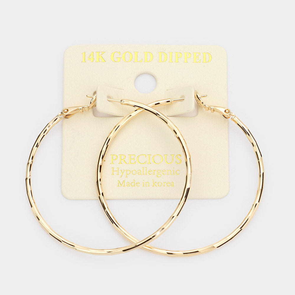 iLLASPARKZ 14K Gold Dipped 1.5 Inch Textured Metal Hoop Earrings
