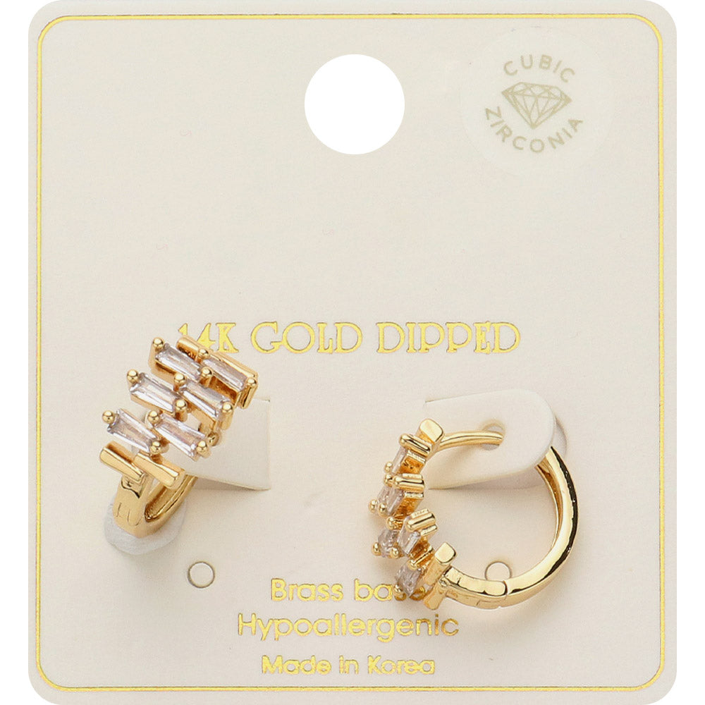 iLLASPARKZ 14K Gold Dipped Disorganize CZ Stone Embellished Huggie Hoop Earrings
