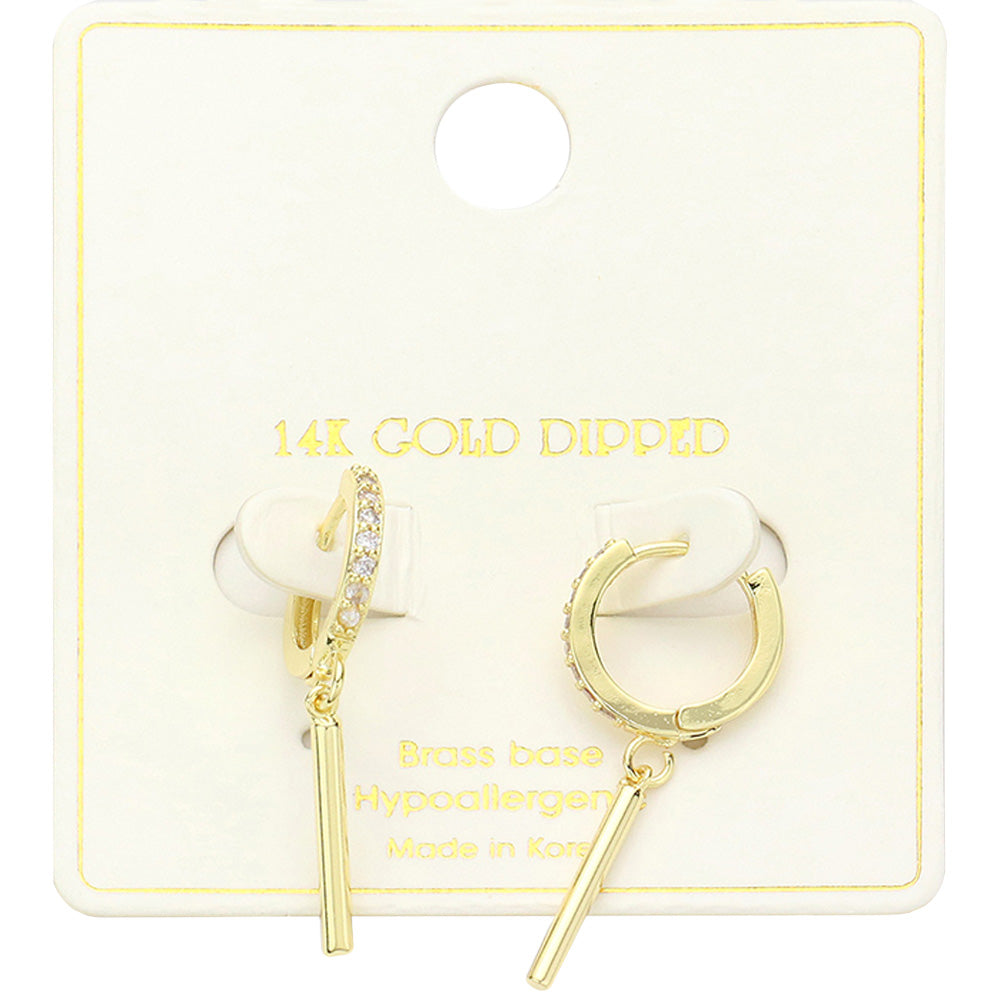 iLLASPARKZ 14K Gold Dipped Drop Bar CZ Paved Huggie Earrings