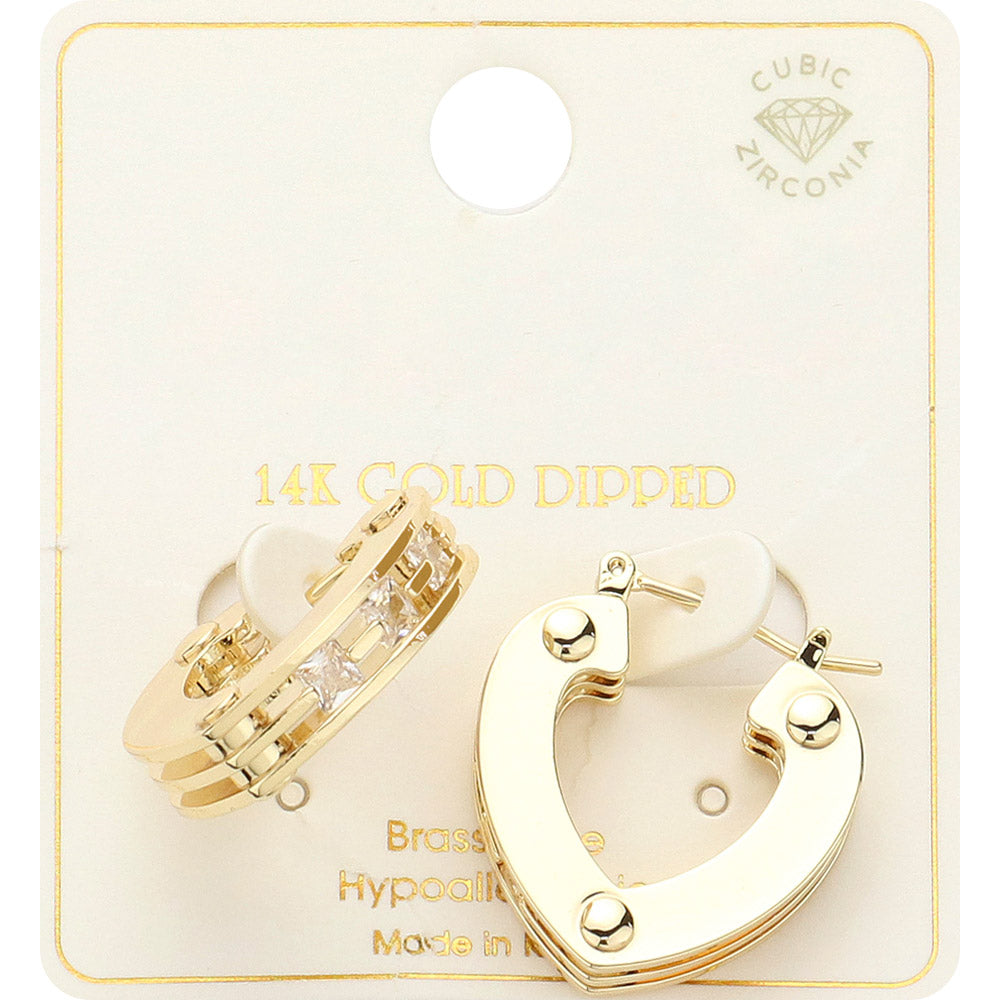 iLLASPARKZ 14K Gold Dipped Trio Layer Heart Pin Catch Earrings