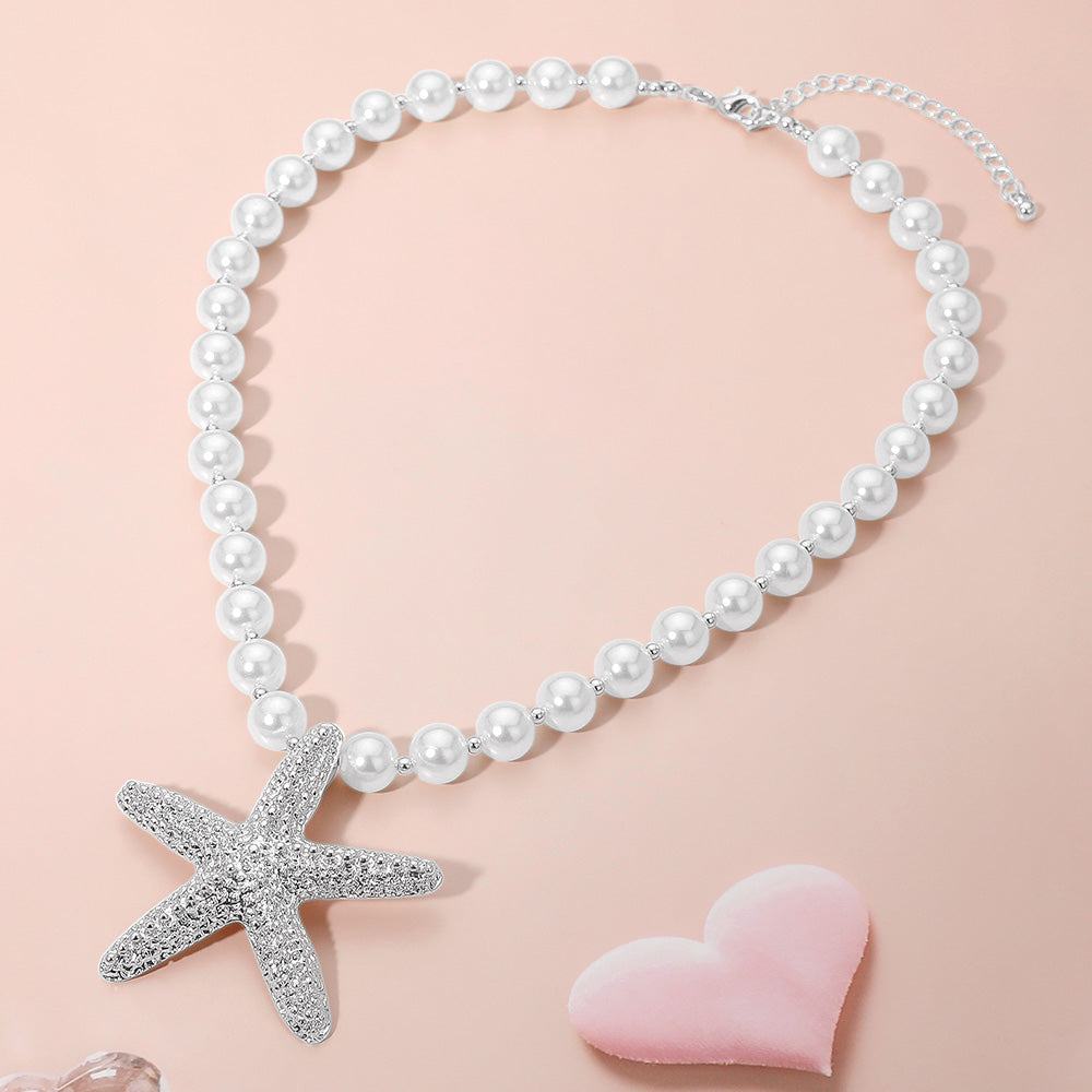 Beautiful pearl necklace featuring a sparkling starfish pendant, blending ocean-inspired elegance with timeless charm. Perfect for beach weddings, summer events, or special occasions, this necklace makes a stunning statement piece for those who love coastal and nature-inspired jewelry.