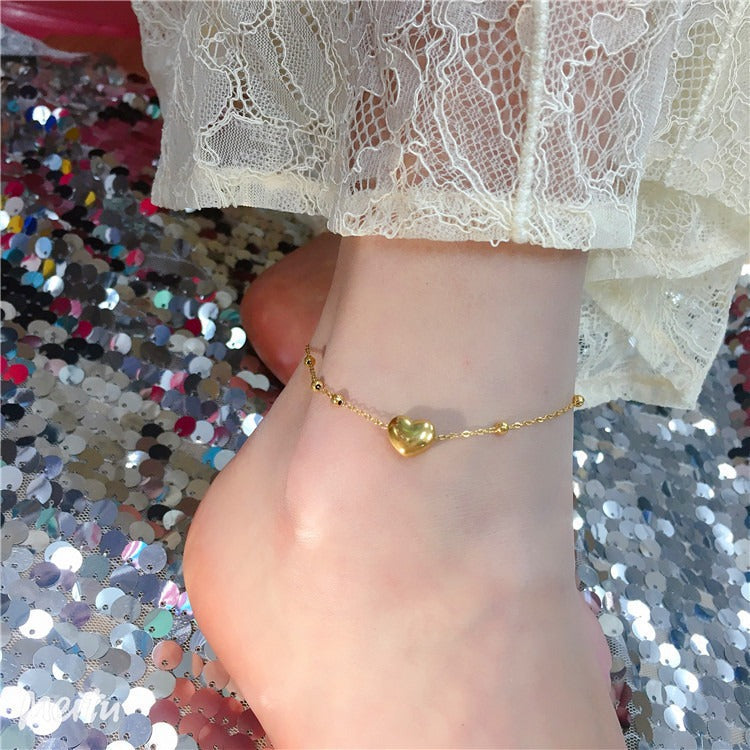 Sweet Heart, Gentle and Charming: The anklet features a delicate heart-shaped pendant, round and full, symbolizing love and good wishes, adding a touch of spirit to the overall look.