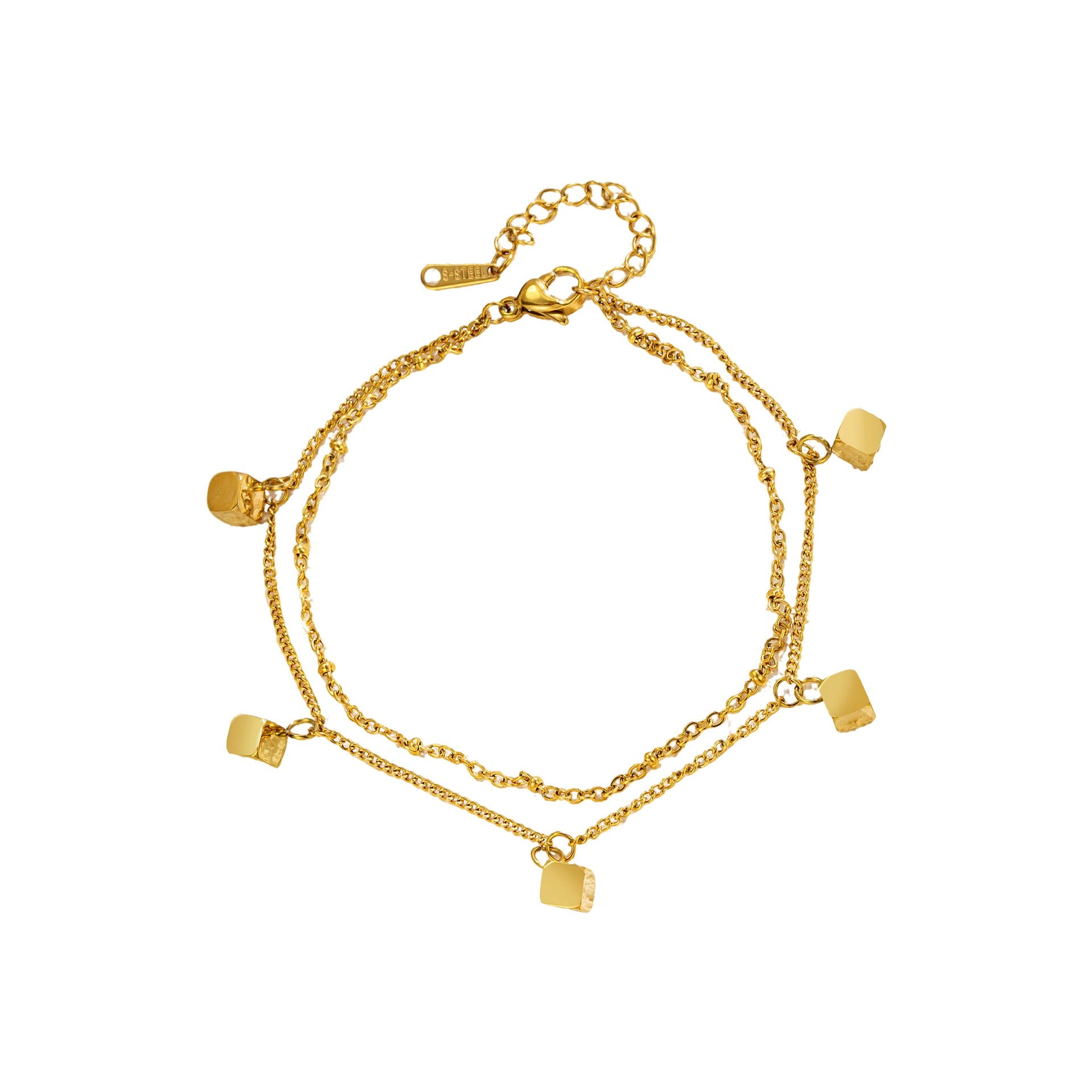 Inspired by a minimalist geometric aesthetic, this 18K gold-plated double-layered square anklet showcases the independent, confident, and elegant spirit of a modern woman. Whether worn daily or on vacation, it's sure to be a standout.