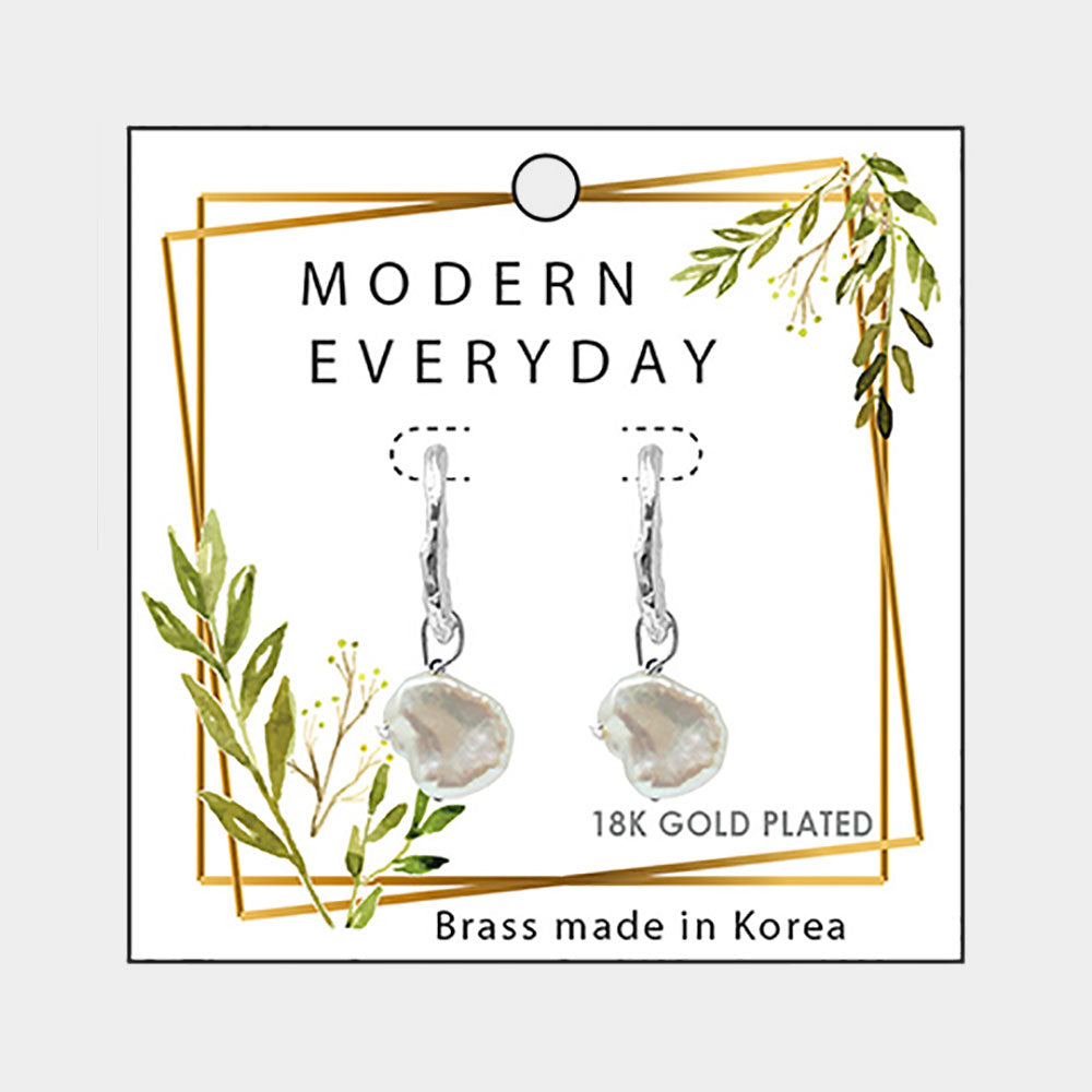 iLLASPARKZ 18K White Gold Plated Brass Half Metal Triangle Pearl Dangle Earrings