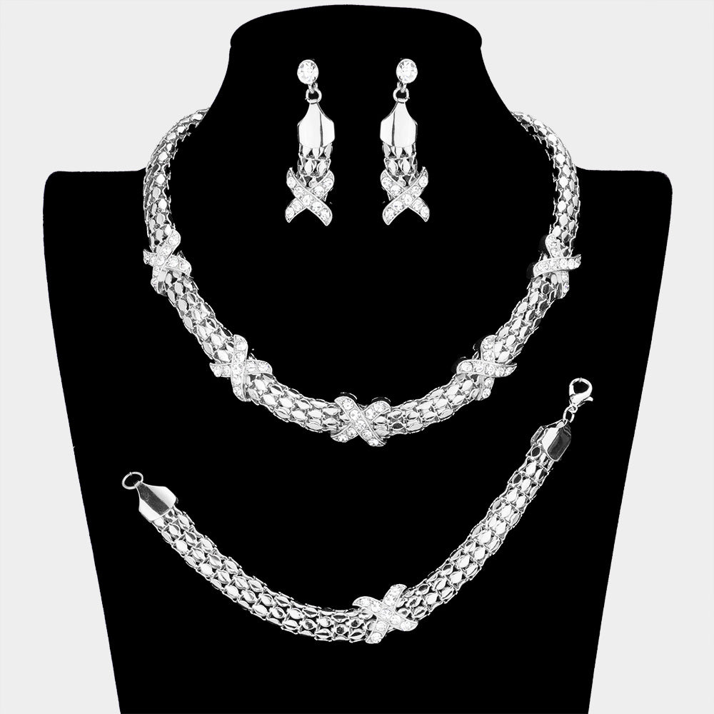 iLLASPARKZ 3-PCS Crossed Rhinestone Necklace Jewelry Set