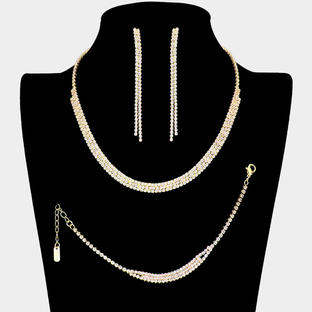 iLLASPARKZ 3PCS - Rhinestone Crystal Fringe Necklace Jewelry Set