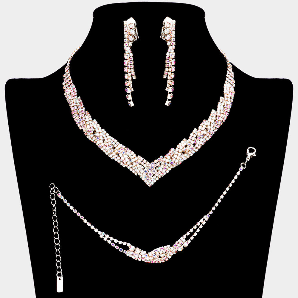 iLLASPARKZ 3PCS - Rhinestone Pave Necklace Clip On Earring Jewelry Set