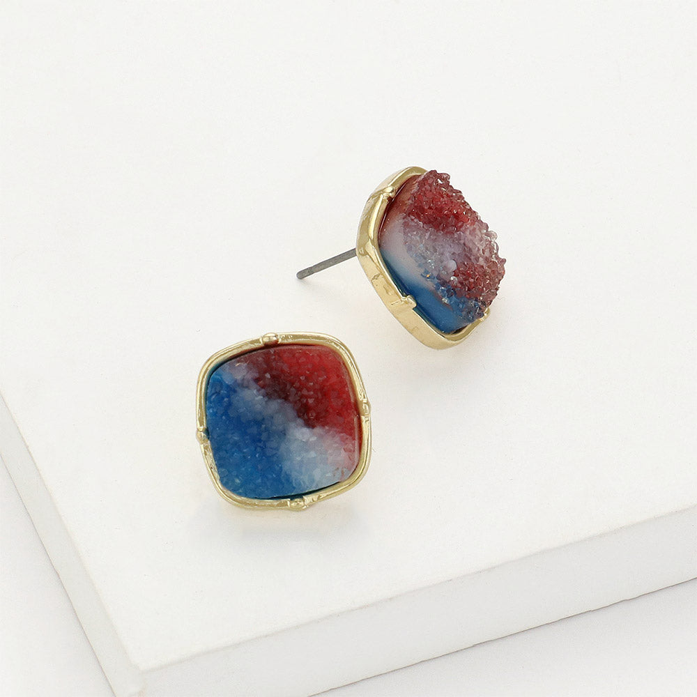 iLLASPARKZ American USA Flag Theme Druzy Square Stud Earrings