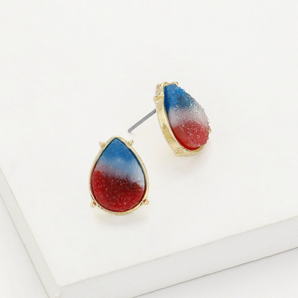 iLLASPARKZ American USA Flag Theme Druzy Teardrop Stud Earrings