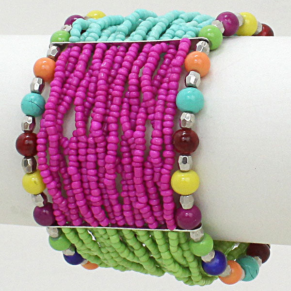 • Bohemian Seed Beaded Stretch Bracelet