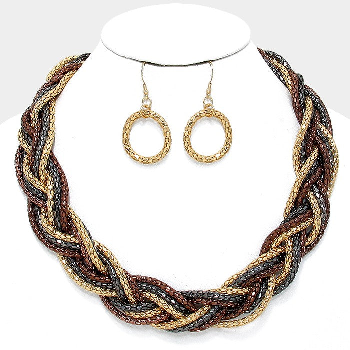 iLLASPARKZ Braided Metal Chain Collar Necklace