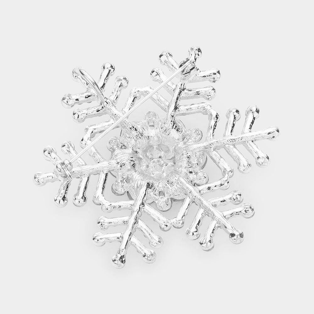 Elegant snowflake brooch pin adorned with sparkling rhinestones, perfect for adding a festive touch to winter outfits, coats, scarves, or hats. Ideal accessory for holiday parties, weddings, or as a thoughtful seasonal gift. A stylish way to showcase charm and elegance during the winter season.