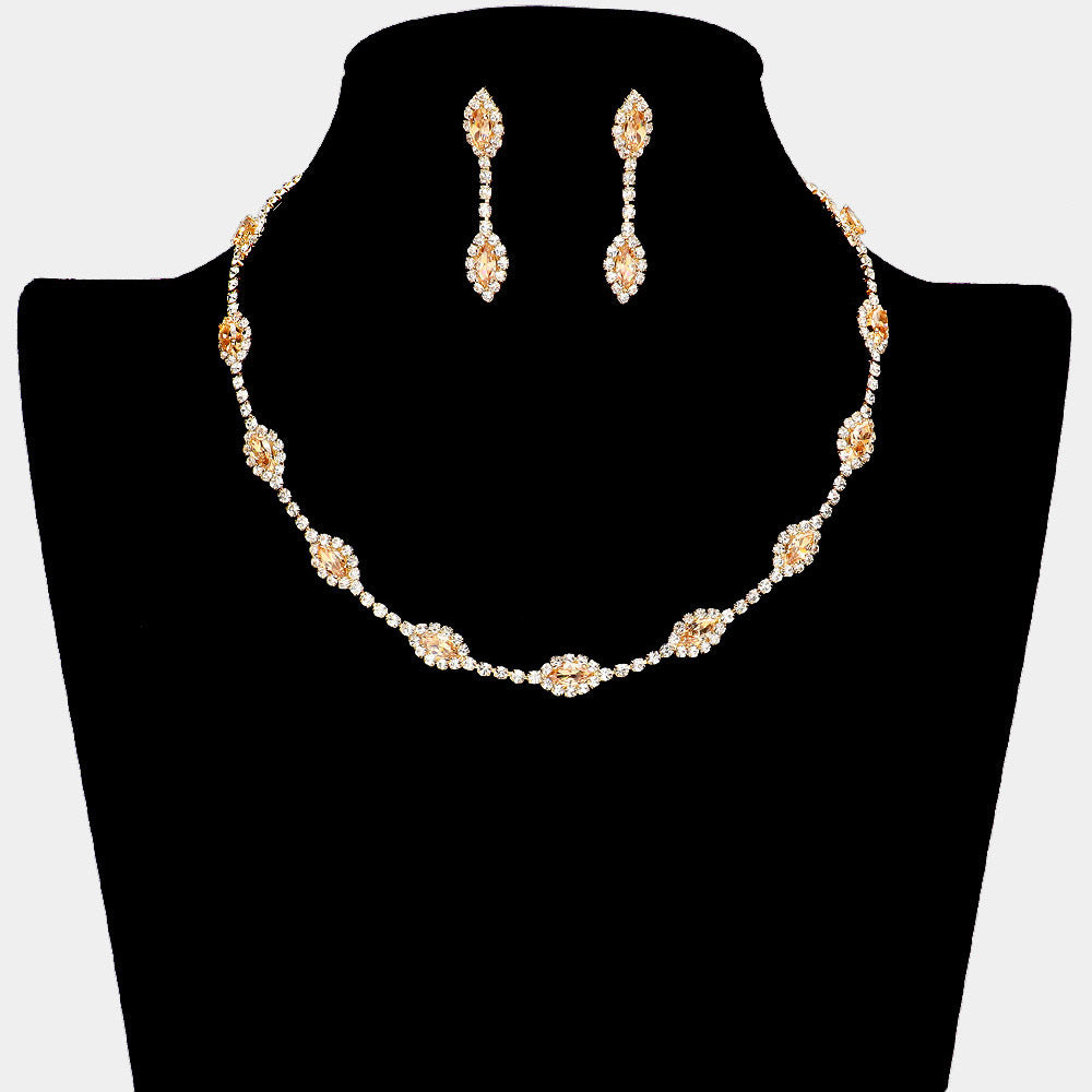 iLLASPARKZ CZ Marquise Stone Pointed Rhinestone Paved Station Necklace